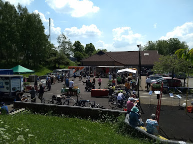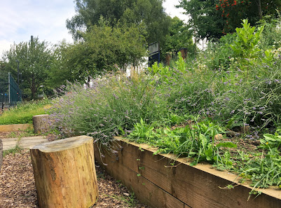 The outside court has floodlighting, a climbing frame and slide, picnic benches, and plenty of space to run around. It has been used for cycle parties, a storytelling arena with straw bales for seats, and an exercise area.